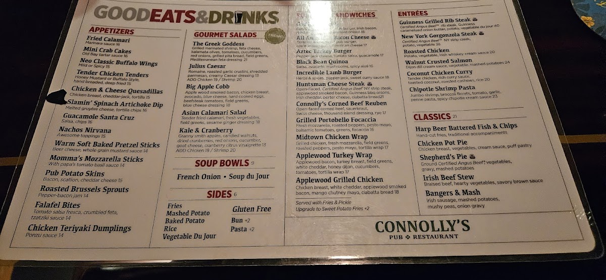 Whether you’re here for a casual lunch, a pint, or to catch the game, Connolly's offers a welcoming ambiance and attentive service, making it a perfect destination for any occasion.